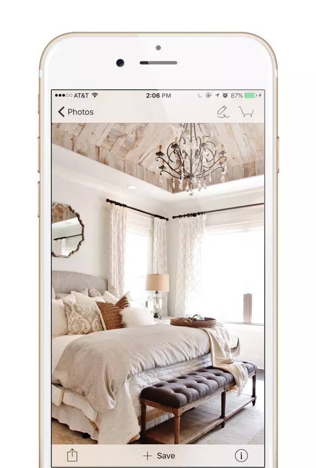 Houzz還有個(gè)很有趣的功能,就是可以把你想買的家具“放到”你家里試一試效果,比如這個(gè)燈~