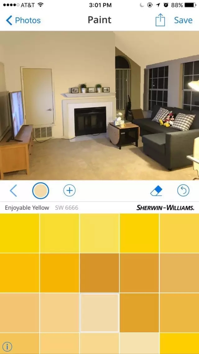 Zillow Digs還有個(gè)很有趣的功能,是可以虛擬地粉刷你家的墻~上傳/拍攝家里的照片,你可以選擇想要粉刷的顏色,讓你在真的粉刷之前看看效果~