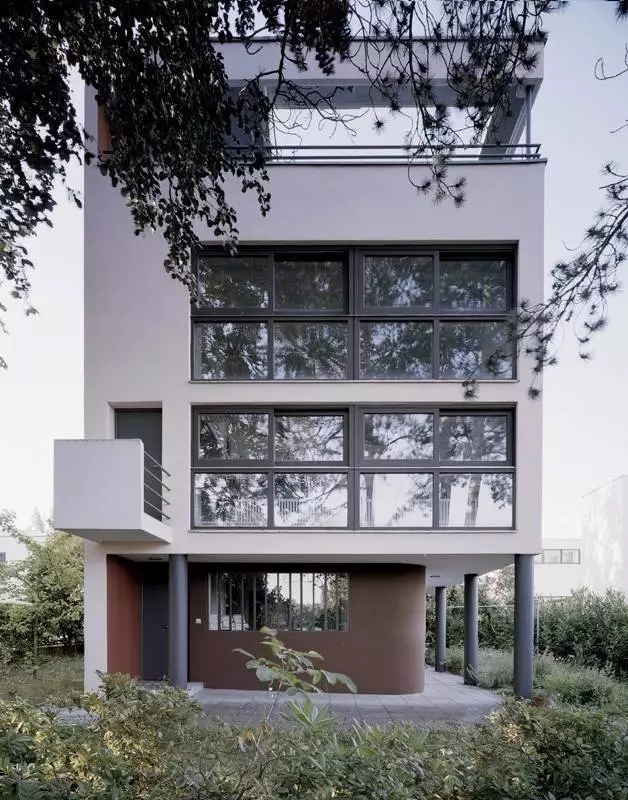 底層架空(Pilotis):主要層離開地面。獨(dú)特支柱使一樓挑空。
