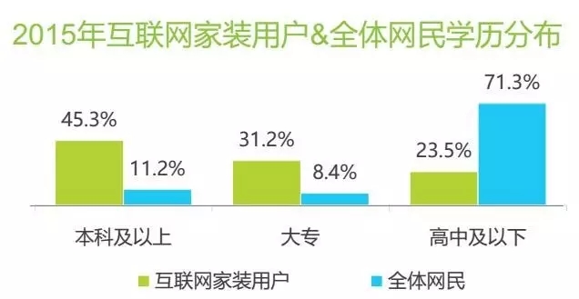 互聯(lián)網(wǎng)家裝用戶相對(duì)整體網(wǎng)民更年輕、高學(xué)歷