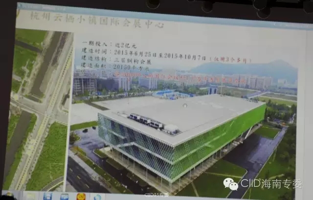 在分享中,王賢俊以所見的CIID(杭州)年會主會場(杭州云棲小鎮(zhèn)國際會展中心)為例,從建筑的外觀顏色(藍色、綠色)、內部細節(jié)結合自己網(wǎng)上所查詢的會展資料,逐一述說其對會展設計的理解,讓人深切感受到了王賢俊對分享做足了“功課“,以及其孜孜不倦的好學精神。。如:“藍色、綠色”的外觀使人感受到了其中蘊含的“和平、安靜、純潔、理智”深刻含義。而部分結構的設計創(chuàng)意,來源于”綠水青山”青山造型的簡化。