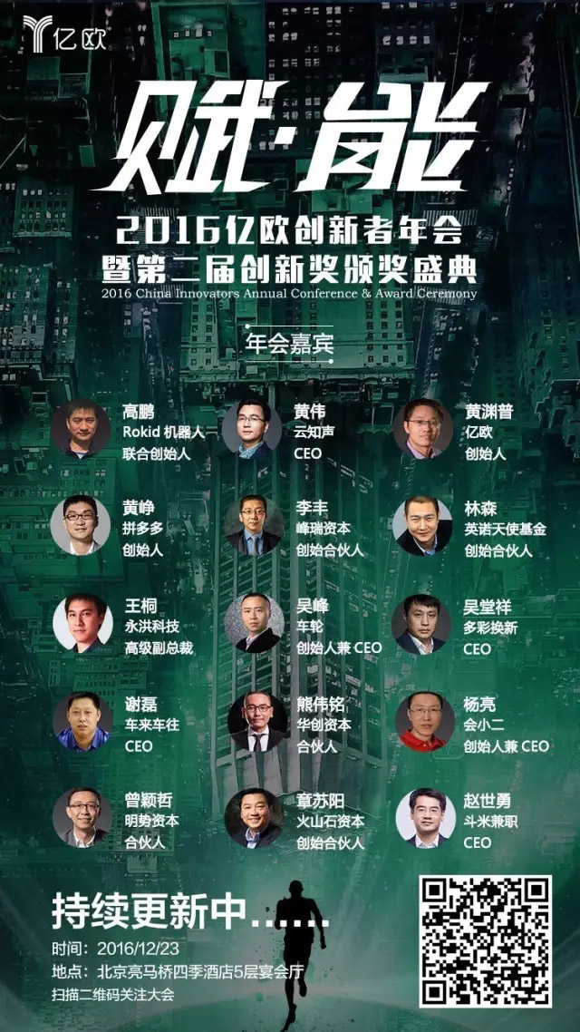 2016年最后一場(chǎng)行業(yè)盛會(huì),第二屆創(chuàng)新獎(jiǎng)評(píng)選再度來(lái)襲,12月23日,北京亮馬橋四季酒店,見(jiàn)證新資本、新產(chǎn)業(yè)、新技術(shù)、新理念帶來(lái)全新變革。科技賦能產(chǎn)業(yè),見(jiàn)證下一個(gè)商業(yè)風(fēng)口!