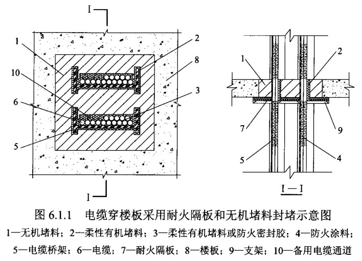 依據(jù)DL/T 5707《電力工程電纜防火封堵施工工藝導(dǎo)則》,電纜穿樓板防火封堵可采用五種方法:①耐火隔板和無機(jī)堵料封堵、②耐火隔板和阻火包封堵、③防火復(fù)合板封堵、④防火涂層板封堵、⑤密封模塊封堵,封堵原理和具體做法總結(jié)如下,以供大家在工程中結(jié)合規(guī)范參考實施。