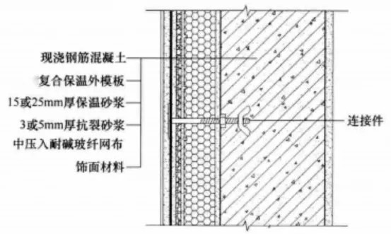 主要由復合保溫模板、防護與飾面層構(gòu)成。